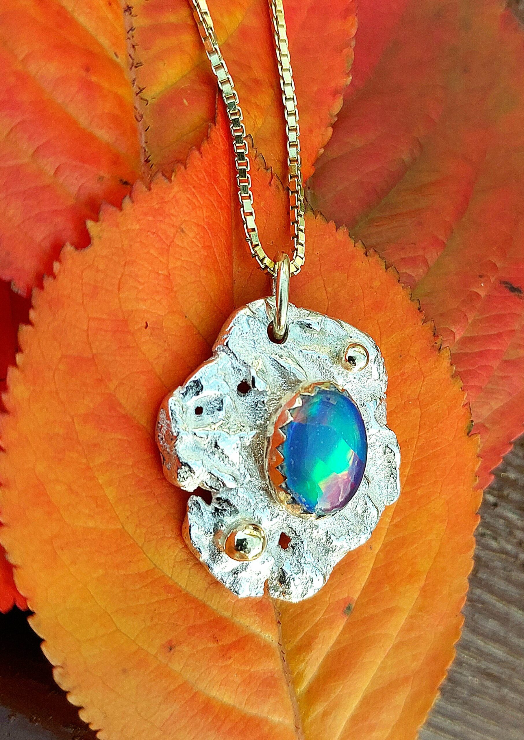 Gull og sølv opal anheng nr 9 ( 9×7 mm opal)