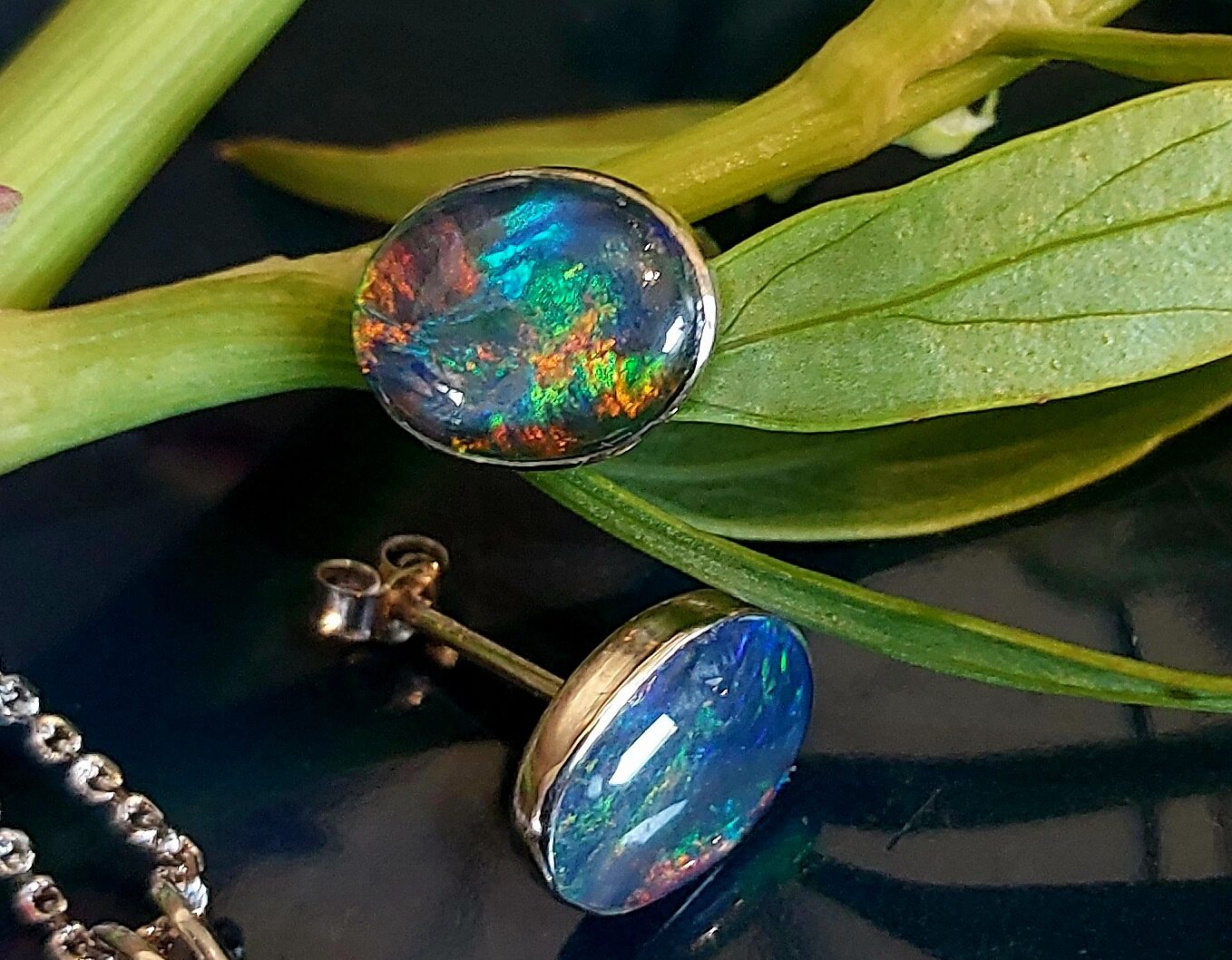 Hvitt gull opal ørepynt nr 2 (9×7 mm opaler)
